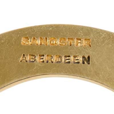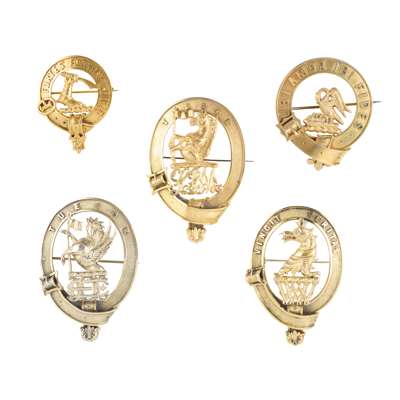 A COLLECTION OF FIVE GILT-METAL PLAID BROOCHES