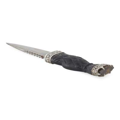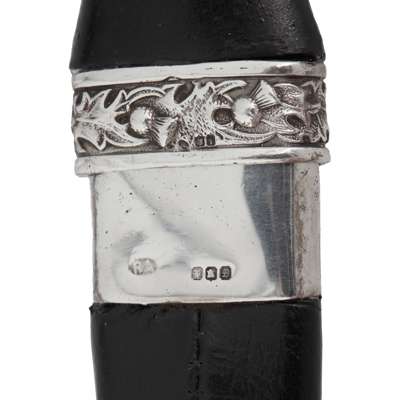 basket weave handle claw set with smokey quartz scabbard with cast thistle mounts