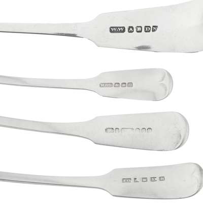 William Whitecross marked W.W, A, B, D, N; Rettie & Sons marked R&S, A, B, D, N, John Garden marked J.G, A, B, D, N and Peter Gill and Sons marked PG, &, SON, A, B, D (4)
