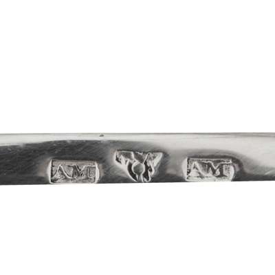 marked AM, thistle, AM, of open oval form with reeded rims and scroll terminals, raised on a short stem and rectangular foot, the interior of bowls gilded (2)