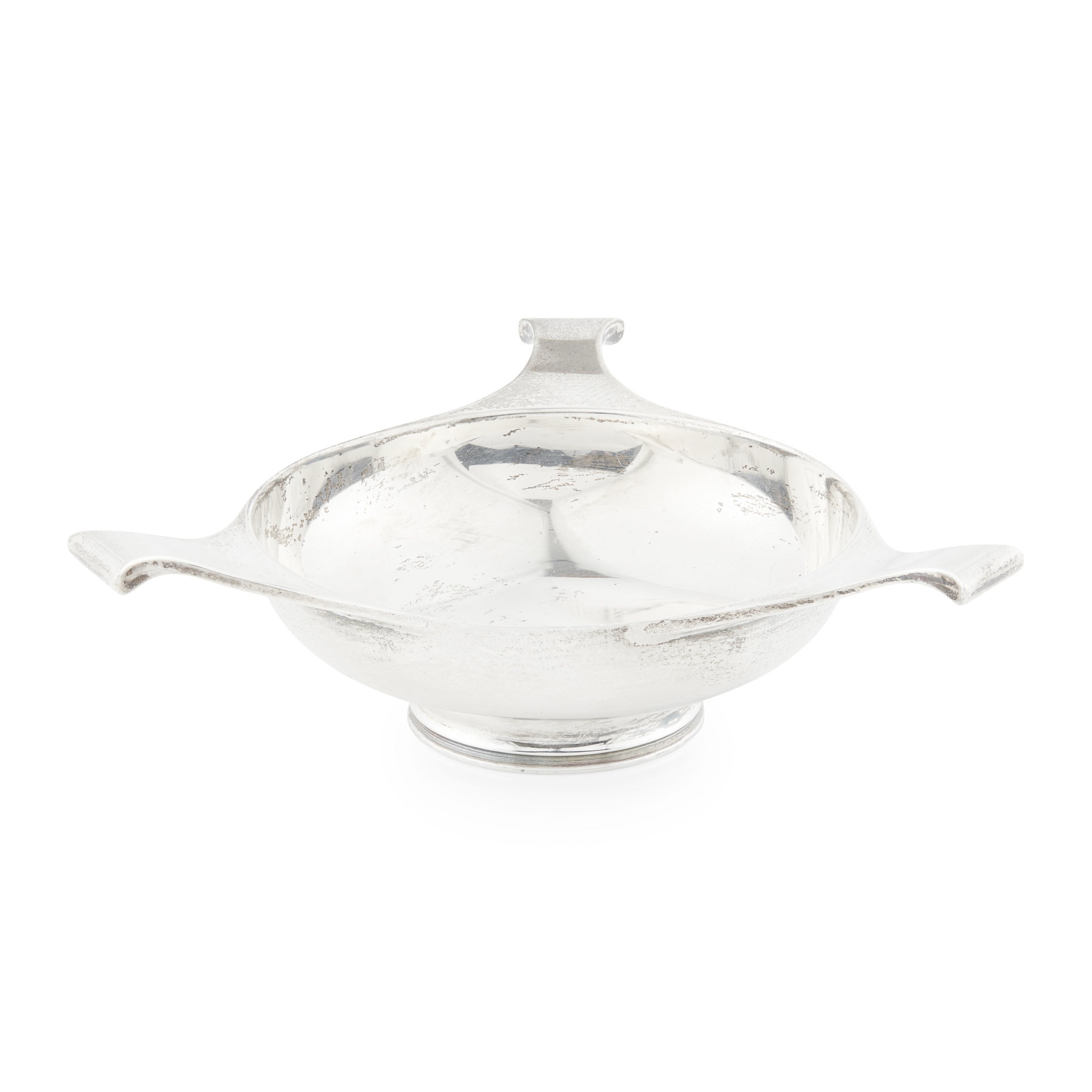 marked ROBB / BALLATER, Edinburgh 1913, the shallow hemispherical bowl with three flared lugs, raised on a simple collet foot