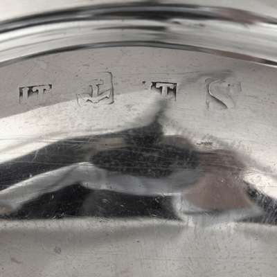 marked IT, anchor, IT, S, the deep bowl with simple pierced decoration and reeded rim, with large open work single handle