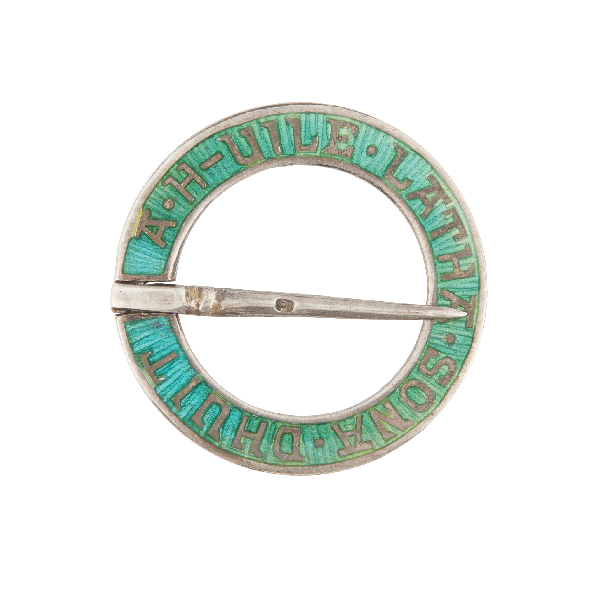 Birmingham 1946, of simple annular form with Gaelic motto turquoise enamel, with integral swing pin
