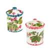 to include a LARGE 'RASPBERRIES' PRESERVE JAR & COVER, glazed earthenware, impressed maker’s mark WEMYSS WARE/ R.H.& S., printed Thomas Goode & Co. retailer's mark, 16cm high; a MEDIUM 'RASPBERRIES' PRESERVE JAR & COVER, glazed earthenware, painted maker’s mark WEMYSS, 12cm high (2)