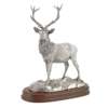 the naturalistically modelled standing Royal stag on a rocky and foliate base, further raised on a simple wooden base