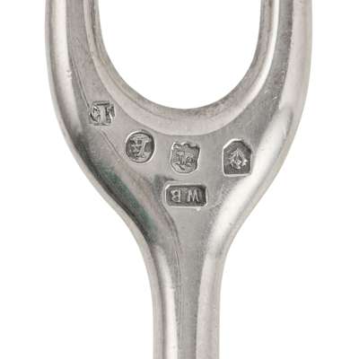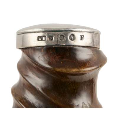 additional import F mark, the polished horn handle with silver mounted terminal engraved with foliate WA