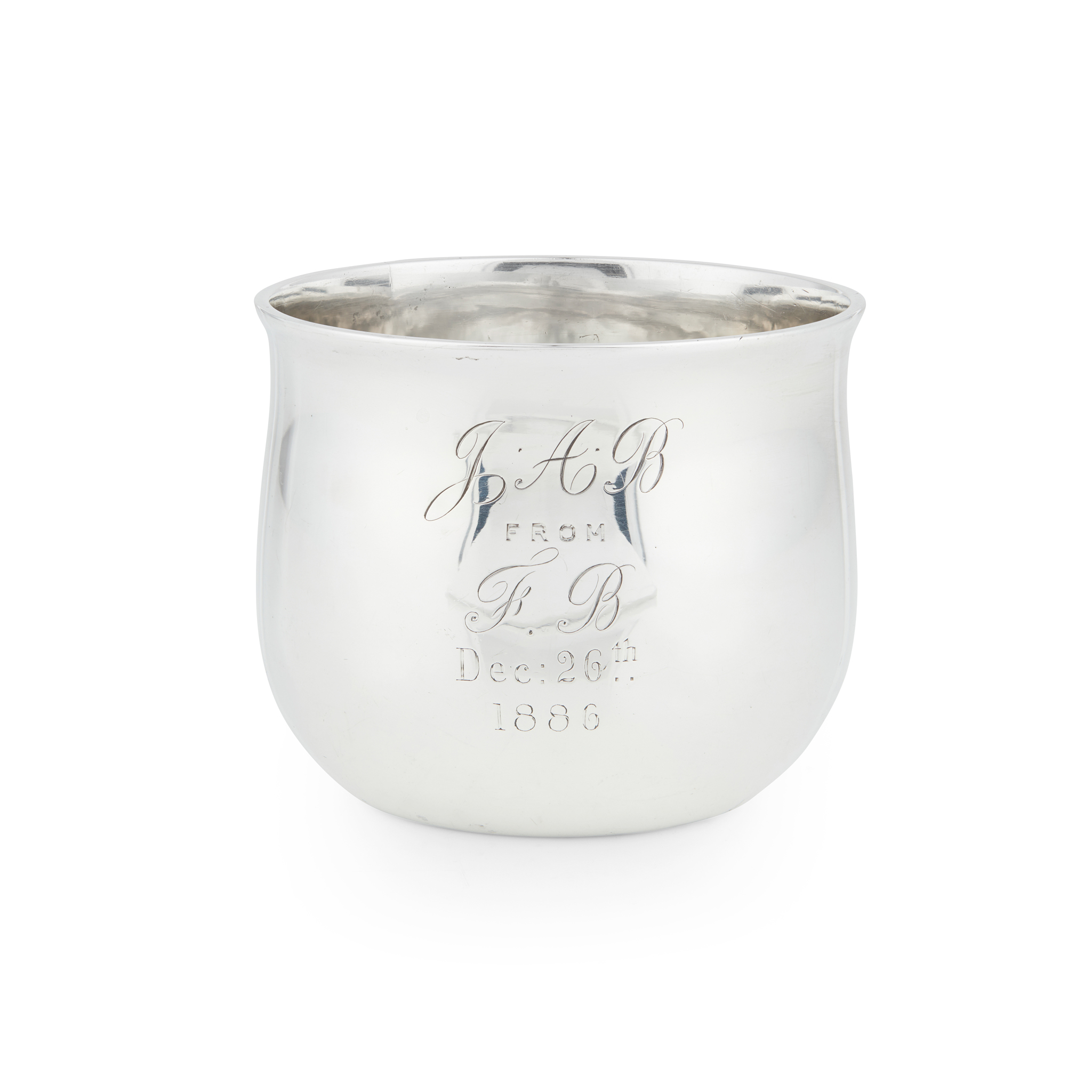 of slight baluster form, engraved presentation engraving to body ‘ J. A. B. from F.B. Dec 26th 1886’