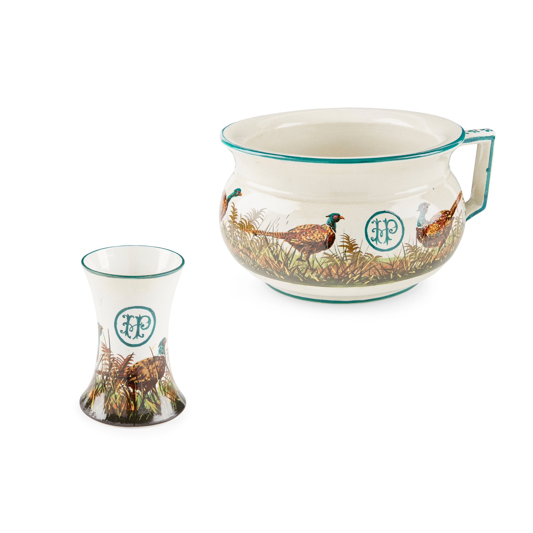 glazed earthenware, decorated by Karel Nekola, bears painted inscription HP, painted maker's mark WEMYSS, printed T. Goode & Co. retailer's mark, 21cm diameter; together with 'PHEASANTS' BEAKER, glazed earthenware, painted by Karel Nekola, painted monogram HP, impressed maker's mark WEMYSS, painted marks WEMYSS/ T. GOODE & CO. LONDON, 11cm high (2)