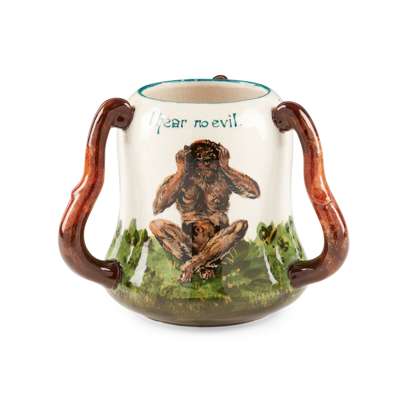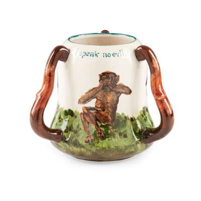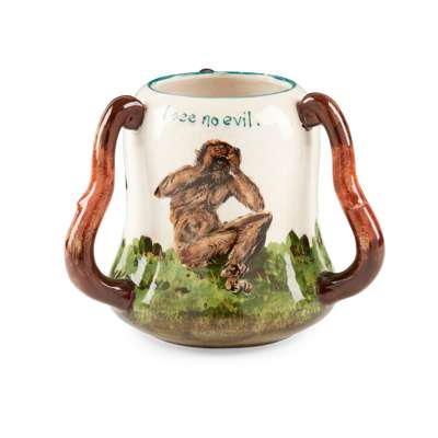glazed earthenware, painted by Karel Nekola, bearing the inscription I HEAR NO EVIL./ I SEE NO EVIL./ I SPEAK NO EVIL., impressed maker's mark WEMYSS