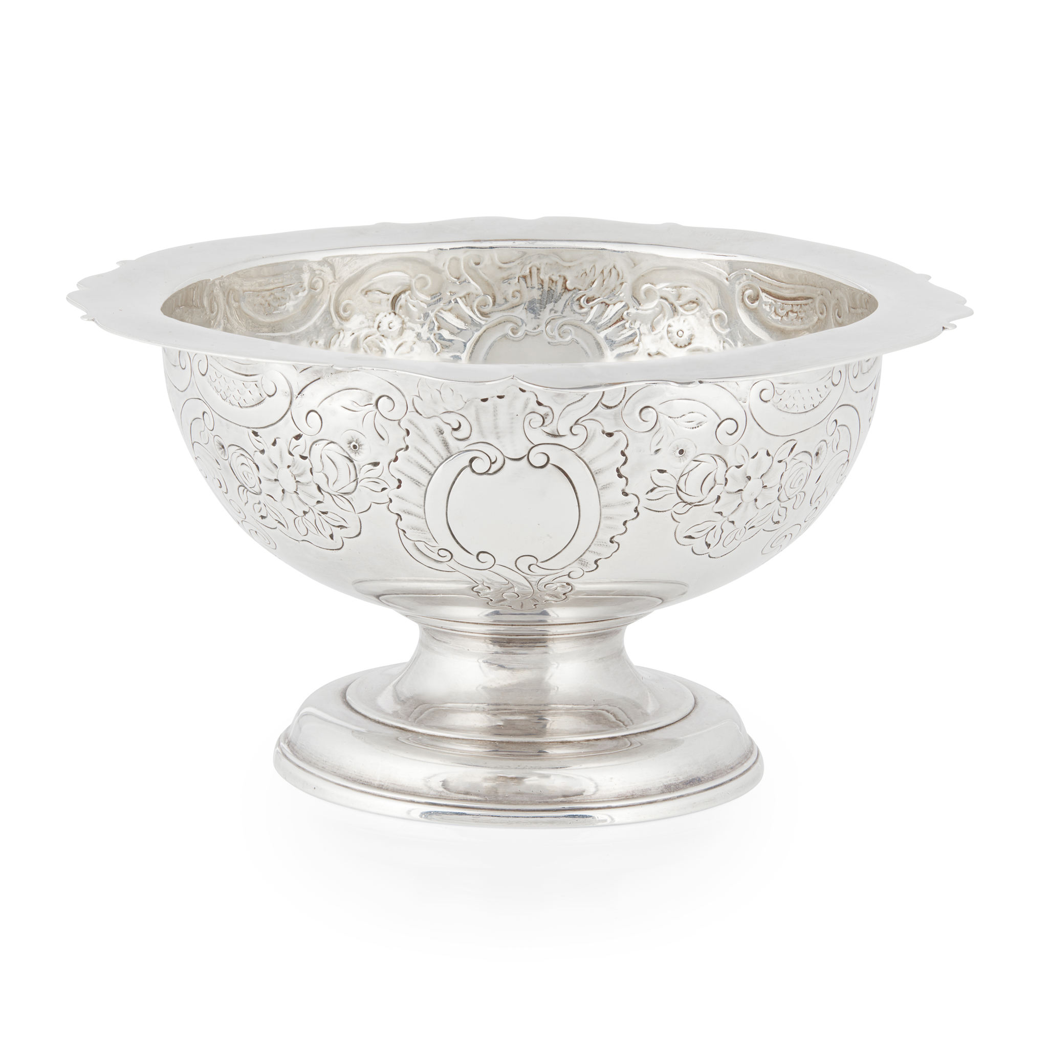Assay Master Hugh Gordon, of traditional form, chased shell and scroll detail to the body, everted rim, raised on a stepped foot