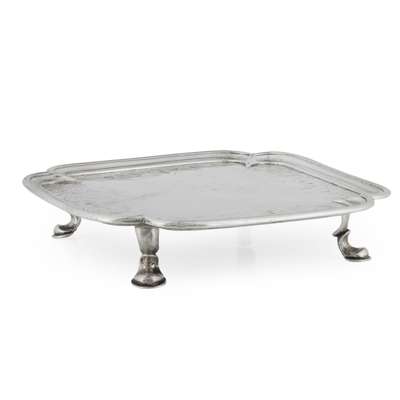 Assay Master, Archibald Ure, of square outline with inswept corners the centre with trailing shell and foliate scroll border, raised on four hoof feet
