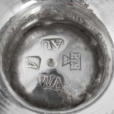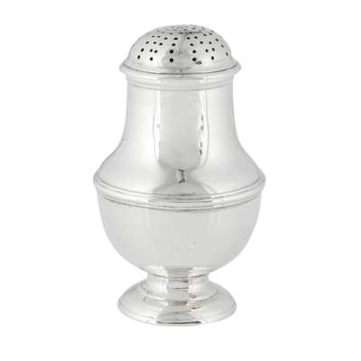Assay Master, Archibald Ure, of plain baluster form with reeded girdle and raised on short stem and spool foot, the pull off domed cover with simple pierced decoration
