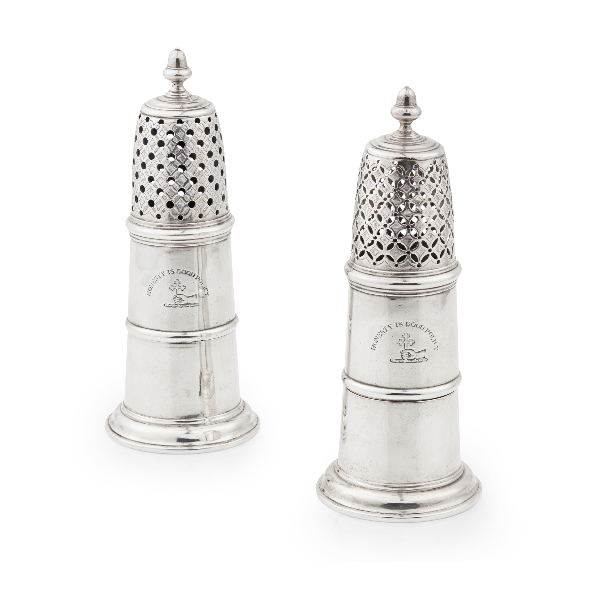 A RARE PAIR OF QUEEN ANNE SUGAR CASTERS