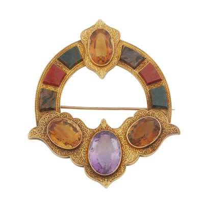 A SCOTTISH VICTORIAN MULTI-GEM AND HARDSTONE SET BROOCH