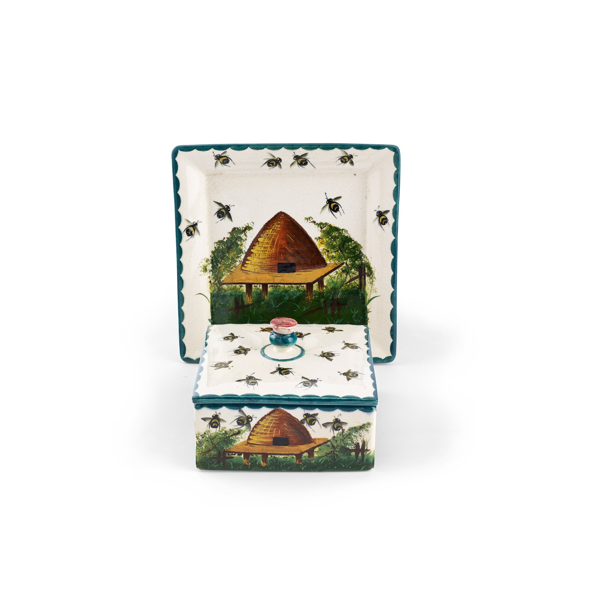 Note: This type of square box for honeycomb was originally specially commissioned by Thomas Goode & Co., Fife Pottery's exclusive agents in London.