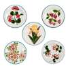 to include a 'YELLOW IRISES' GORDON DESSERT PLATE, glazed earthenware, impressed maker's mark WEMYSS WARE/ R.H.& S., 21cm diameter; a 'DOG ROSES' GORDON DESSERT PLATE, glazed earthenware, painted by James Sharp, painted and impressed maker's marks WEMYSS, 20.5cm diameter; a 'HONEYSUCKLE' GORDON DESSERT PLATE, glazed earthenware, impressed maker's mark WEMYSS WARE/ R.H.& S., printed Thomas Goode & Co. retailer's mark, 20.8cm diameter; a 'PELARGONIUMS' GORDON DESSERT PLATE, glazed earthenware, impressed maker's mark WEMYSS WARE/ R.H.& S., 21cm diameter; a 'PINK SWEET PEAS' GORDON DESSERT PLATE, glazed earthenware, impressed maker's mark WEMYSS WARE/ R.H.& S., 21cm diameter (5)