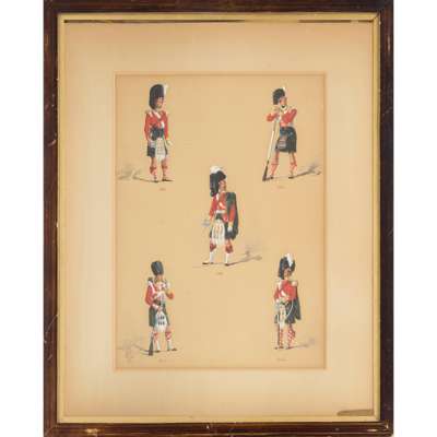 SKETCH OF FIVE SCOTS HIGHLANDER UNIFORMS
