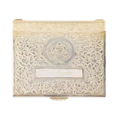 MALAYSIA - A PRESENTATION SILVER AND WOODEN-LINED CIGAR BOX