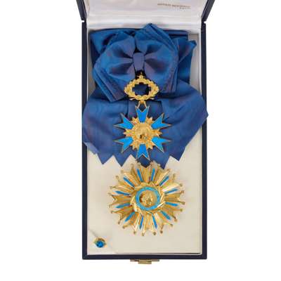 comprising star, badge, sash and miniature button, fitted in a case retailed by Arthur Bertrand of Paris