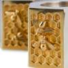 of hexagonal form, modelled as a honeycomb, three sides with a silver-gilt honeycomb design and applied bees, feature hallmarks to one side (2)