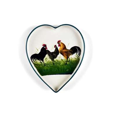 'BLACK AND BROWN COCKERELS WITH GREY HEN' HEART TRAY