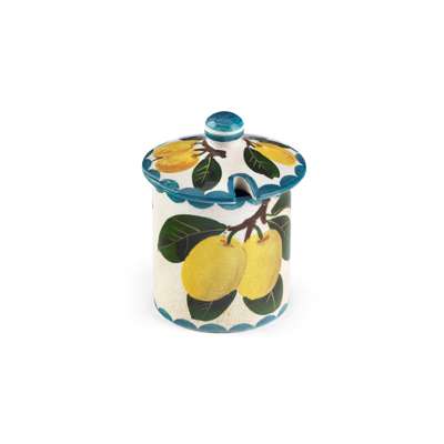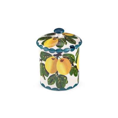 to include MEDIUM 'YELLOW PLUMS' PRESERVE JAR & COVER, glazed earthenware, impressed maker’s mark WEMYSS, 12.5cm high; and a SMALL 'YELLOW PLUMS' PRESERVE JAR & COVER, glazed earthenware, painted maker’s mark WEMYSS, 8cm high (2)