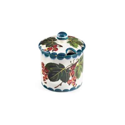 to include a LARGE 'REDCURRANTS' PRESERVE JAR & COVER, glazed earthenware, impressed maker’s mark WEMYSS, 16.5cm high; a MEDIUM 'REDCURRANTS' PRESERVE JAR & COVER, glazed earthenware, painted maker’s mark WEMYSS, 12.5cm high; and a SMALL 'REDCURRANTS' PRESERVE JAR & COVER, glazed earthenware, painted and impressed maker’s mark WEMYSS, 6.5cm high