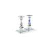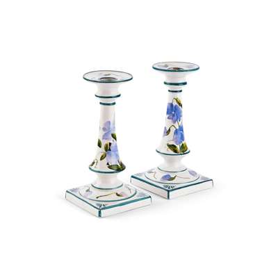 PAIR OF 'BLUE SWEET PEAS' SQUARE BASE CANDLESTICKS