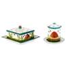 assembled, the stand decorated by Edwin Sandland, stand 19cm across; together with a HONEY POT, COVER & STAND, assembled, the pot decorated by Joe Nekola, the stand decorated by Edwin Sandland, pot 12cm high, stand 14.5cm diameter, each with maker's marks