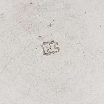 Cruickshank’s larger work is generally seen struck with maker's mark only and close comparison to the marks struck to the Quaich within Aberdeen Art Gallery & Museum and the Aberdeen University Tankard show that the uniquely shaped punch with rather soft edges following the shape of the two initials can concretely be tied to him. He later changes his punch (perhaps as his original is worn) to a more ‘modern’ rectangular shaped punch and this along with Old Aberdeen town marks are seen to his later production of flatware.