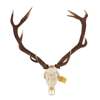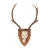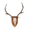 comprising a pair with partial skulls mounted on shield-shaped oak plaques, and three larger sets antlers with partial skulls, unmounted
