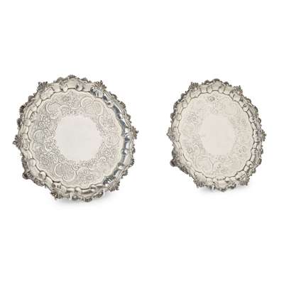 A PAIR OF GEORGE IV SALVERS