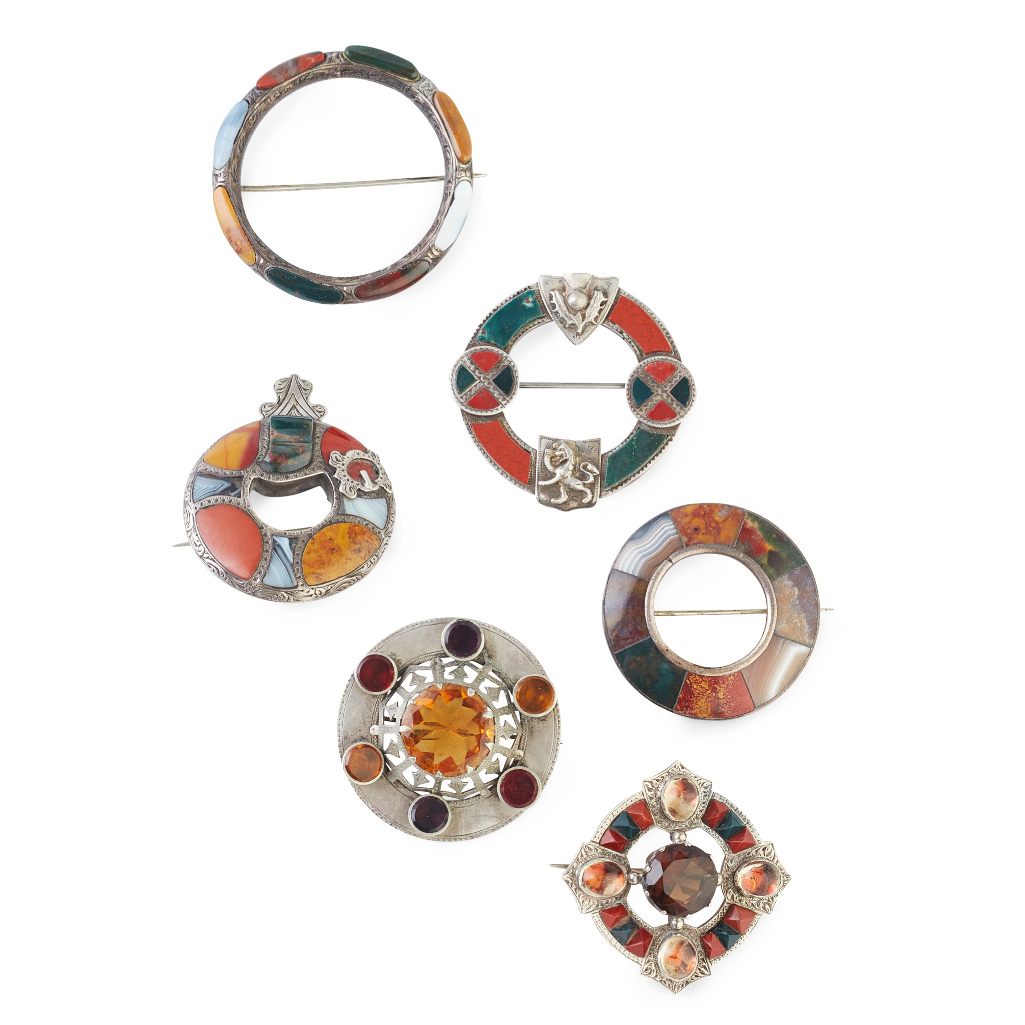 A COLLECTION OF SCOTTISH AGATE SET BROOCHES
