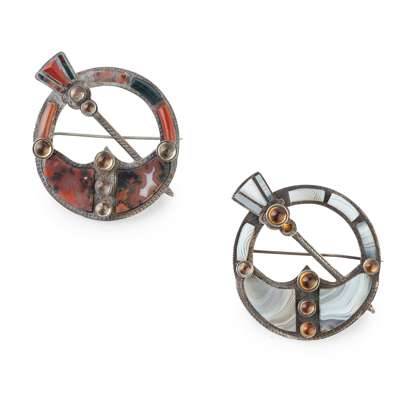 TWO VICTORIAN PENANNULAR STYLE BROOCHES