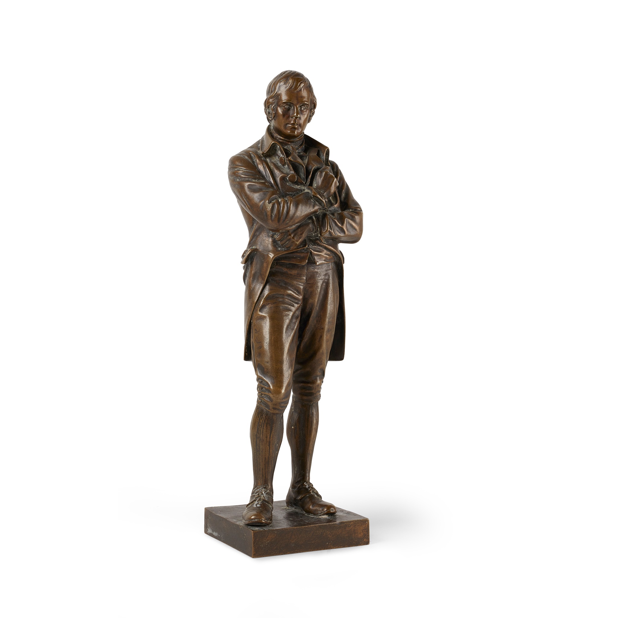 Note: This is a bronze reduction copy of the fine statue of Robert Burns erected in Burns Statue Square, Ayr, by George A. Lawson. The original was unveiled in 1891. Lawson's statue was widely regarded as the most successful statue of Burns sculpted, and was the model for many other such statues around the world notably in Melbourne (Australia), Detroit (USA) and Vancouver, Montreal and Winnipeg (Canada).