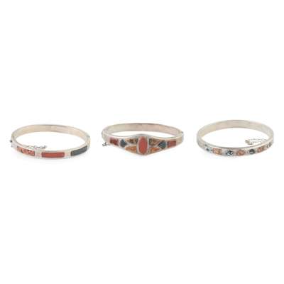 THREE SILVER MOUNTED SCOTTISH HARD STONE BANGLES