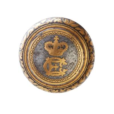 For some time, the cane was considered to have been a gift to Prince Charles from King Louis, however it has not been possible to substantiate this. Despite this, the worked elements of the cane are certainly European, and draw comparisons to some of the finest gold inlaid and steel metalwork made in France and Germany. A closer look at the inlaid decoration is revealing: the placement of the British crown above his initials rather boldly indicates his rightful claim to the throne. Being the monarch's crown, it is possible that this cane was made for Charles after his father's death and he titled himself King Charles III. Indeed, other personal monogrammed items which survive feature the initials CP for Carlos Princepus. While there is some speculation as to whether the cane was gifted by King Louis, there is no doubt surrounding the quality of manufacture. Moreover, the gifting to a French noble family by Prince Charles successfully traces the provenance back to Charles’ own lifetime; a highly unusual feat and few comparisons exist outwith established museum collections.