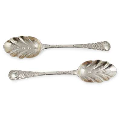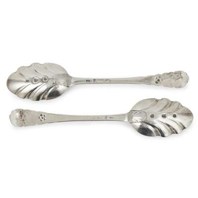 JACOBITE INTEREST: A PAIR OF GEORGE II BERRY SPOONS