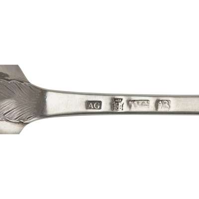 Note: These fascinating berry spoons appear to be commemorative of the Stuart and Jacobite cause. While berry spoons are not uncommon the standard of design is almost exclusively connected to exotic fruits and heavily chased bowls. These appear far more deliberate in their choice of designs. While addition of floral motifs cannot be considered unique the addition of a Stuart oak leaf bowl along with the rose in the ever popular Jacobite form cement these as Jacobite pieces