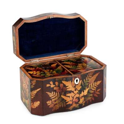 A MAUCHLINE FERNWARE TEA CADDY BY SMITH, MAUCHLINE