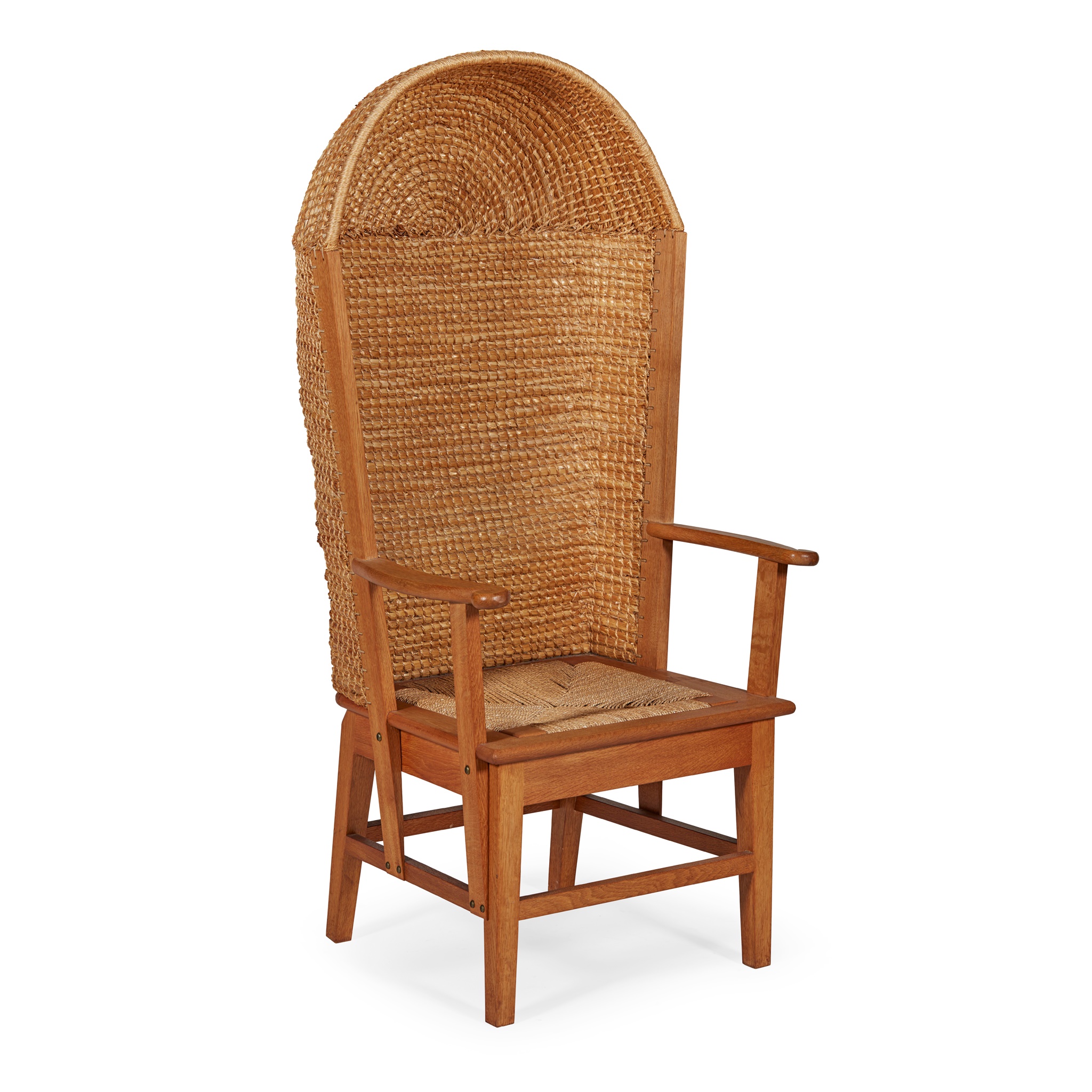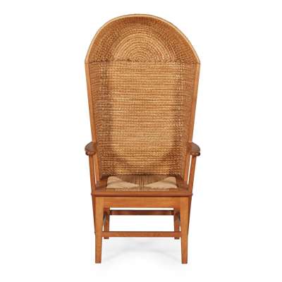 A WHITE OAK AND SEA GRASS HOODED ORKNEY CHAIR