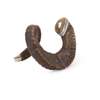 the large curled horn set with white metal mounts, the hinged lid set with horn and white metal cartouche to centre