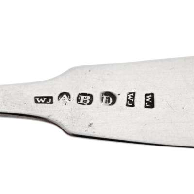 various makers to include, Nathaniel Gillet, James Erskine, James Gordon, Alexander Mollison, William Jamieson etc. of Old English and Fiddle pattern, all with initials or crest engraved to terminal