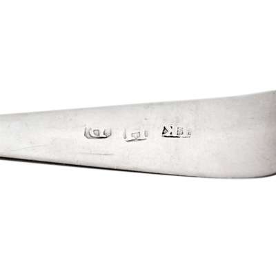 marked IK, H, B, of Old English pattern with script initial D to terminal; together with a pair of Banff teaspoons by William Simpson marked W.S, e, thistle, B