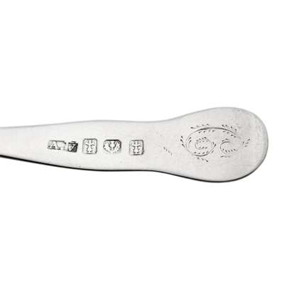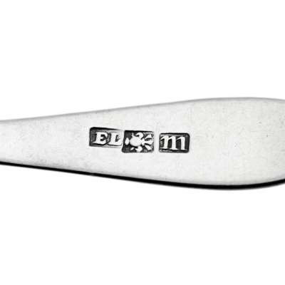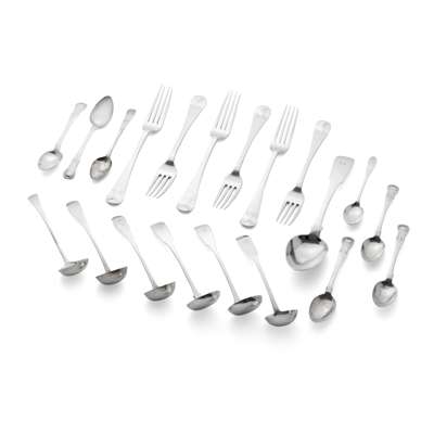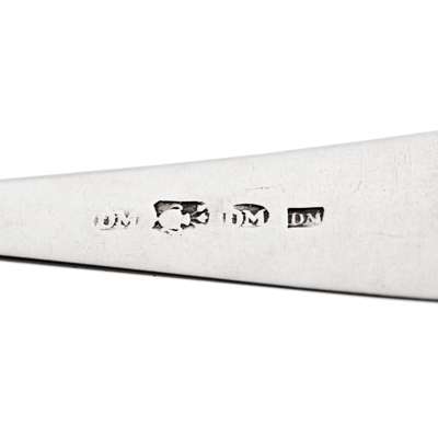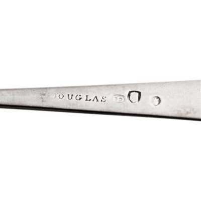 marked CAM/ERON, C, thistle, pot of lilies, DUN/DEE, of Old English pattern with script initial to front of terminals; together with a small collection of Dundee flatware to include toddy ladles, tea and tablespoons