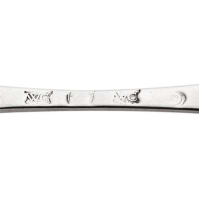 marked WC, town mark, WC, indistinct ‘date letter', of Hanoverian pattern with rat tail to bowl and initials IS / MW to terminal