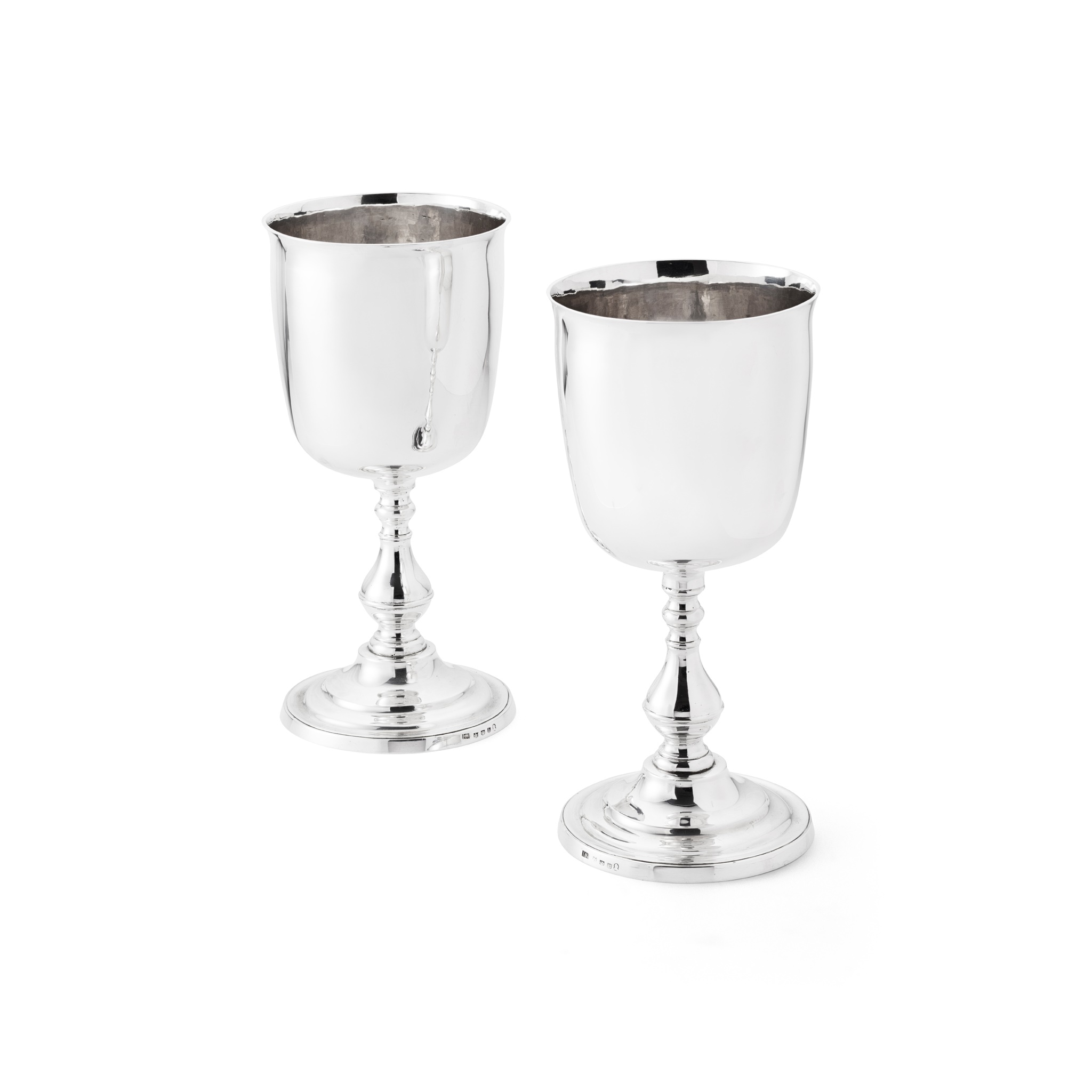the deep bowls of light tapered form raised on triple knopped stems with domed stepped circular foot