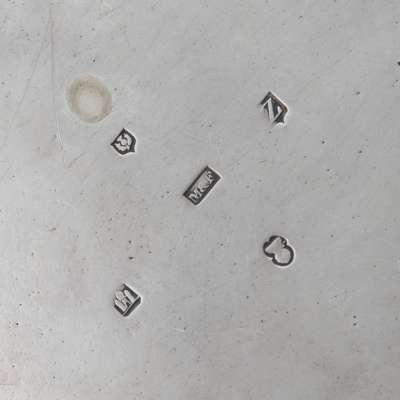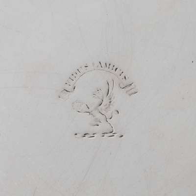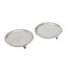 of circular outline with raised threaded border, crest and motto engraved to centre, all raised on three bracket feet