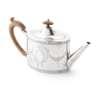 of oval form with straight tapered spout the body, cover and spout with classical bright cut engraved floral swag decoration, with C scroll wooden handle