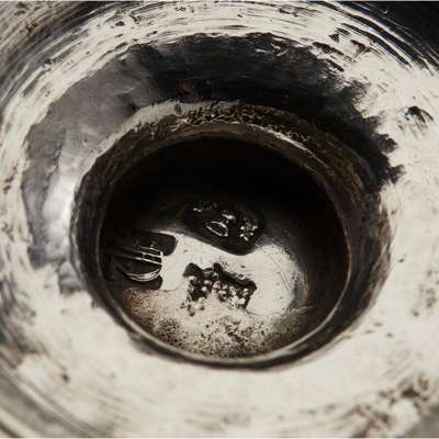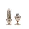 maker's mark lacking, of baluster form, all over chased scroll and floral decoration, the pull-off pierced lid with knopped finial; together with another, William Robertson Edinburgh circa 1780, of vase form raised on a square base
